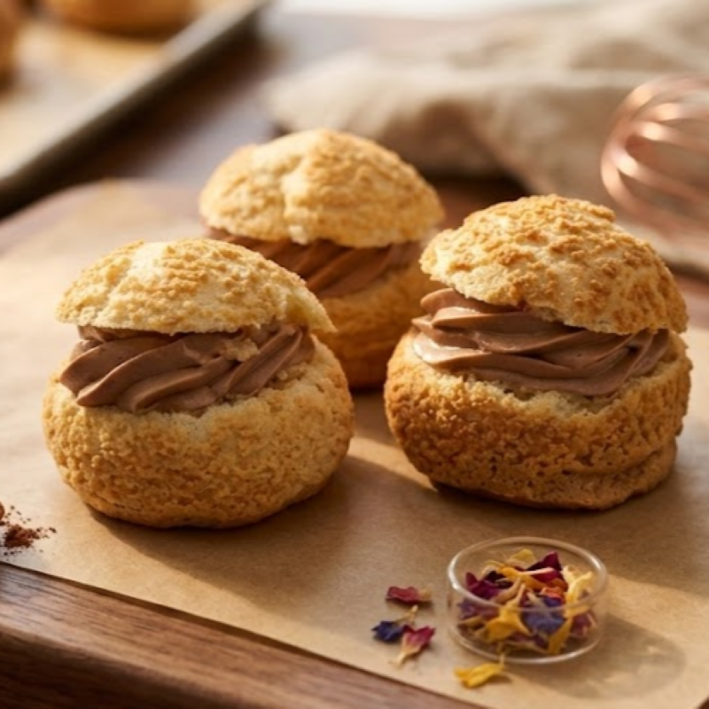 ◎成份:開元調理專用乳(水、乳粉、棕櫚油、牛乳、乳清粉、乳化劑(脂肪酸甘油酯)、磷酸氫二鈉、鹿角菜膠)、長春(紫)打發專用脂(水、油脂(氫化棕櫚核仁油、無水奶油)、蔗糖、乳化劑(脂肪酸甘油酯、乳酸硬脂酸鈉、聚山梨醇酐脂肪酸酯六十)、粘稠劑(羥丙基甲基纖維素、海藻酸鈉)、磷酸氫二鈉(無水)、粘稠劑(乾酪素鈉)、香料、β-胡蘿蔔素(阿拉伯膠、葵花油、麥芽糊精、蔗糖、水、β-胡蘿蔔素、抗氧化劑(L-抗壞血酸棕櫚酸酯、維生素E)))、菠蘿泡芙外殼(水、雞蛋、麵粉、奶油[棕櫚油脂、水、鹽、複方乳化劑(脂肪酸甘油酯、脂肪酸聚合甘油酯、葵花籽卵磷脂)、香料、檸檬酸、食用色素(婀娜多色素、薑黃色素)、抗氧化劑(混合濃縮生育醇)]、糖、泡打粉[膨脹劑(碳酸氫鈉)、品質改良劑(酸性焦磷酸鈉)、馬鈴薯粉、樹薯粉]、乾酪素鈉、羧甲基纖維素鈉、抗氧化劑(異抗壞血酸鈉)、防腐劑(己二烯酸鉀)、蛋白粉、膨脹劑(酒石酸氫鉀)、麥芽糊精、大豆分離蛋白)、卡士達粉B(糖粉、羥丙基磷酸二澱粉、全脂奶粉、奶精(玉米糖漿、氫化椰子油、乳清粉、磷酸氫二鉀、乾酪素鈉、二氧化矽、脂肪酸甘油酯、多磷酸鉀、乳酸硬脂酸鈉、香料、色素(婀娜多、薑黃色素))、硫酸鈣、鹽、海藻酸鈉、鹿角菜膠、香草粉、焦磷酸鈉、胡蘿蔔素)、梵麗時73%黑巧克力 Sensation72(可可膏、糖、可可脂、大豆卵磷脂、天然香草香料)。